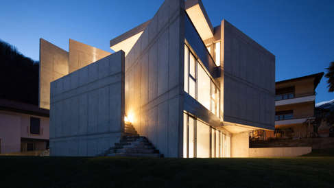Swisshouse XXXIV, located in Galbisio, Ticino, Switzerland, started construction and was finished by 2017. The buildings context almost as important as the building itself making it express meaning already suggested by its context When approaching the building, it is a compositional masterpiece from the well aligned concrete blades to the well-placed openings making a view of every direction. Inside becomes a different world with modern designs and sheik surfaces. The black floor contrasting the white walls complement each other, alongside the wooden table tops in the kitchen and the chrome railings at the stairs.